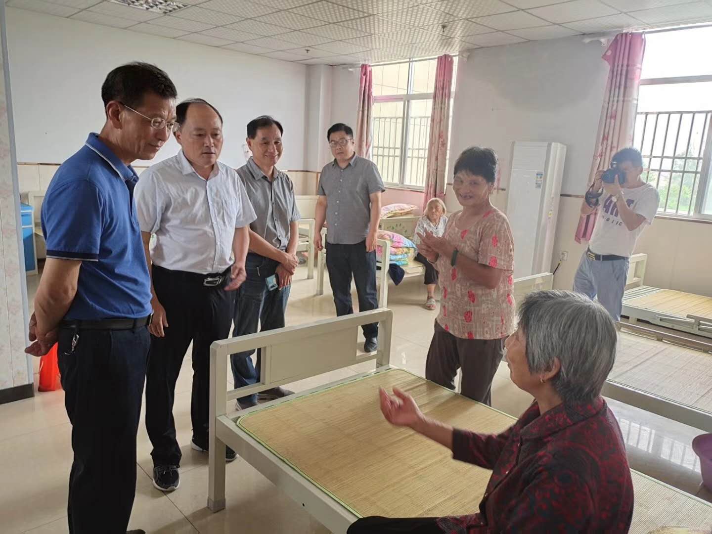 7月21日民政局长冒雨亲临众兴老年公寓看望水灾收留的老人