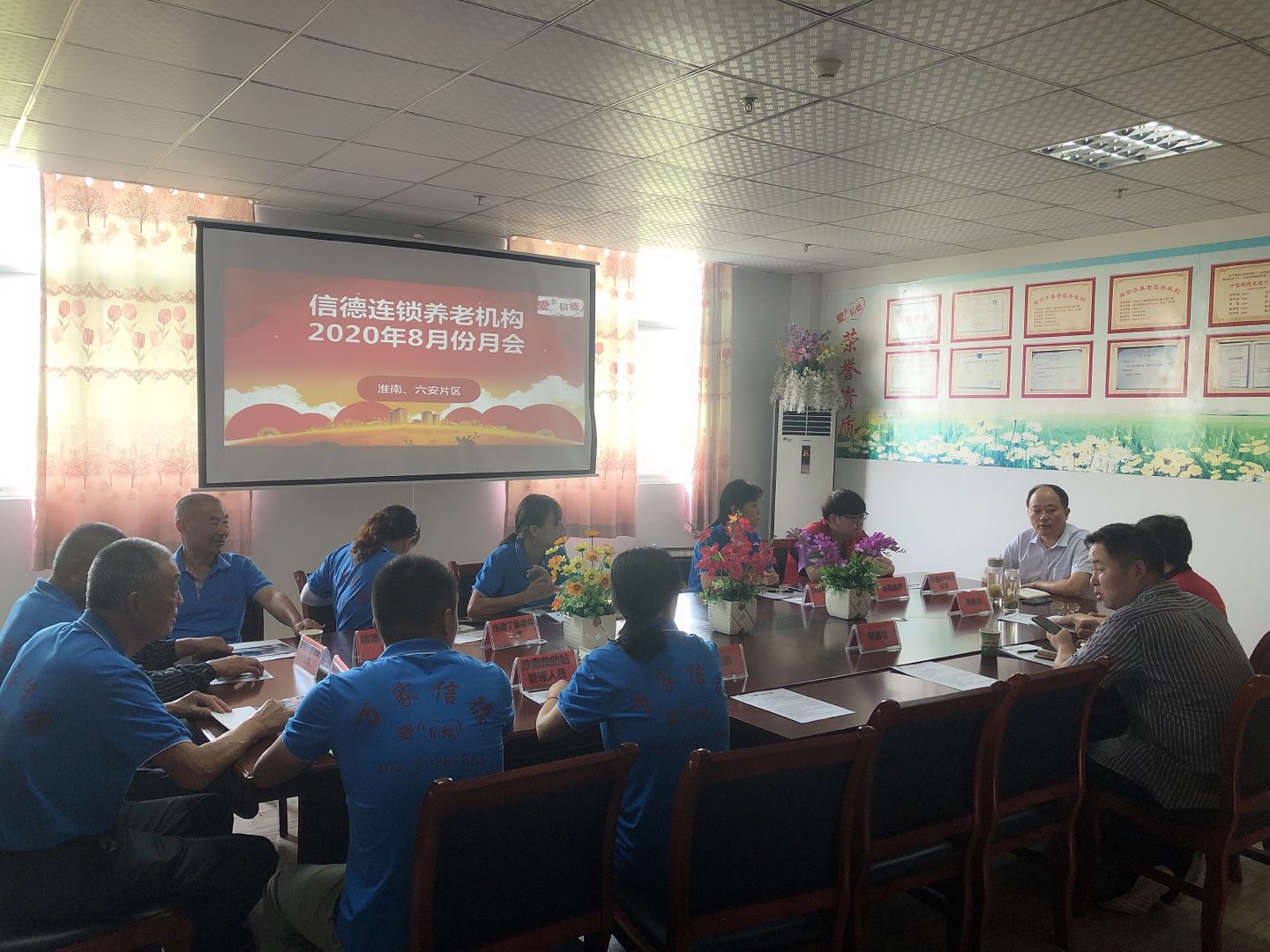 9月1日、2日、4日信德连锁养老机构召开三个片区8月月会,回顾8月份各院工作及需要解决的问题,下达9月份工作安排。