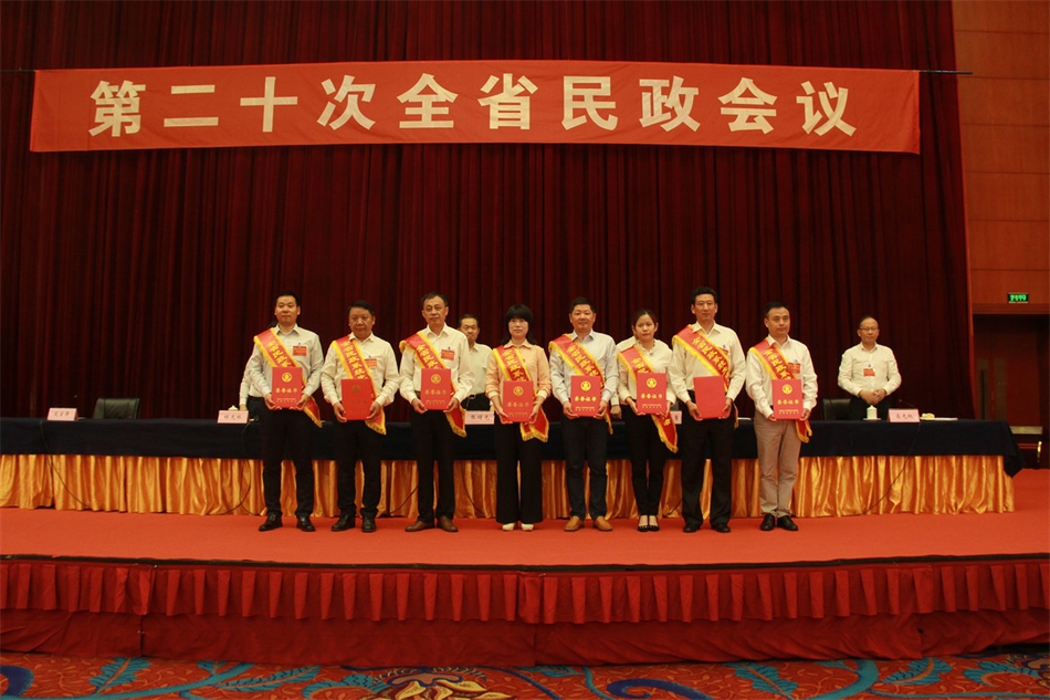 全省民政系统先进集体先进个人代表上台领奖。