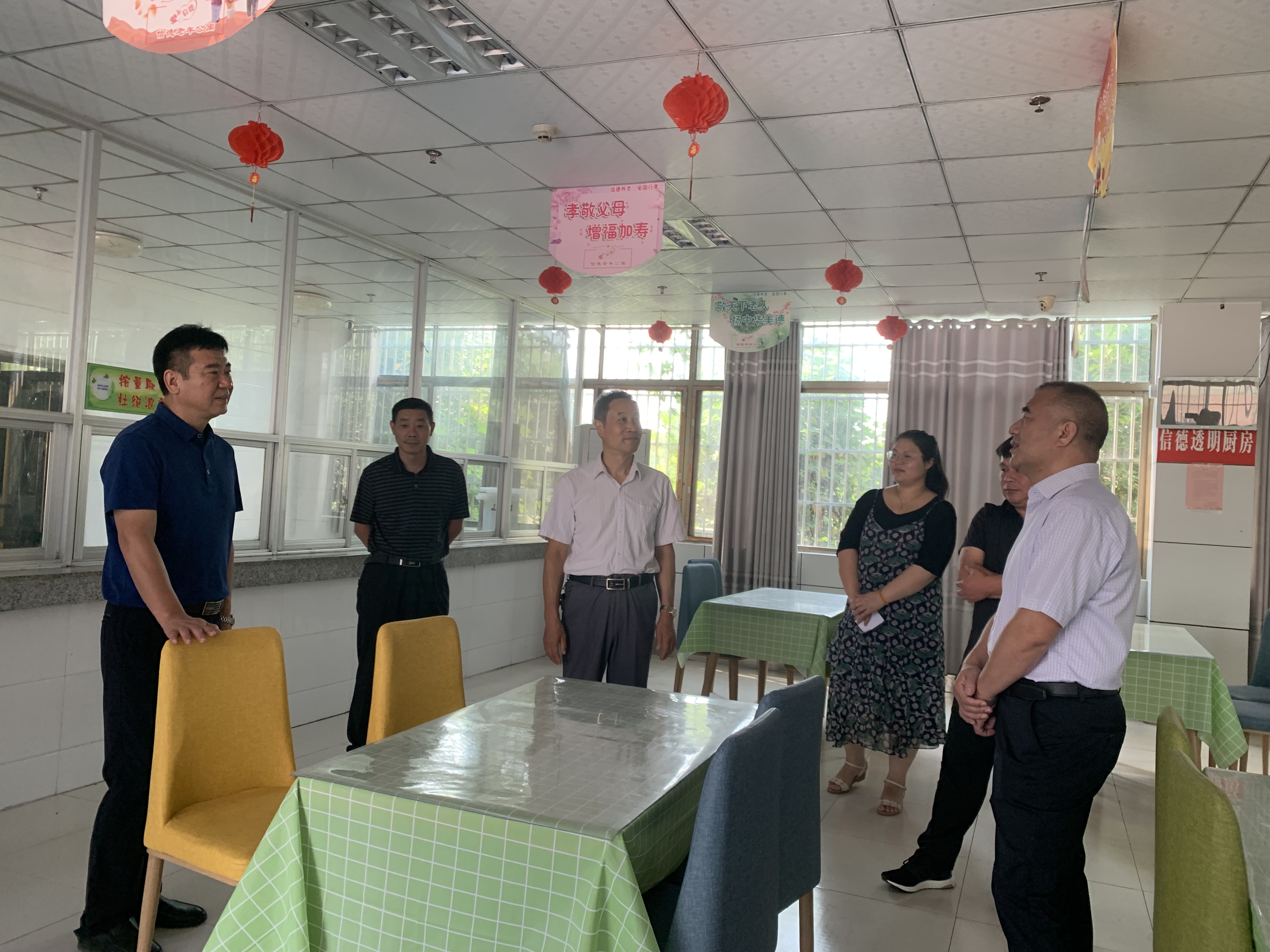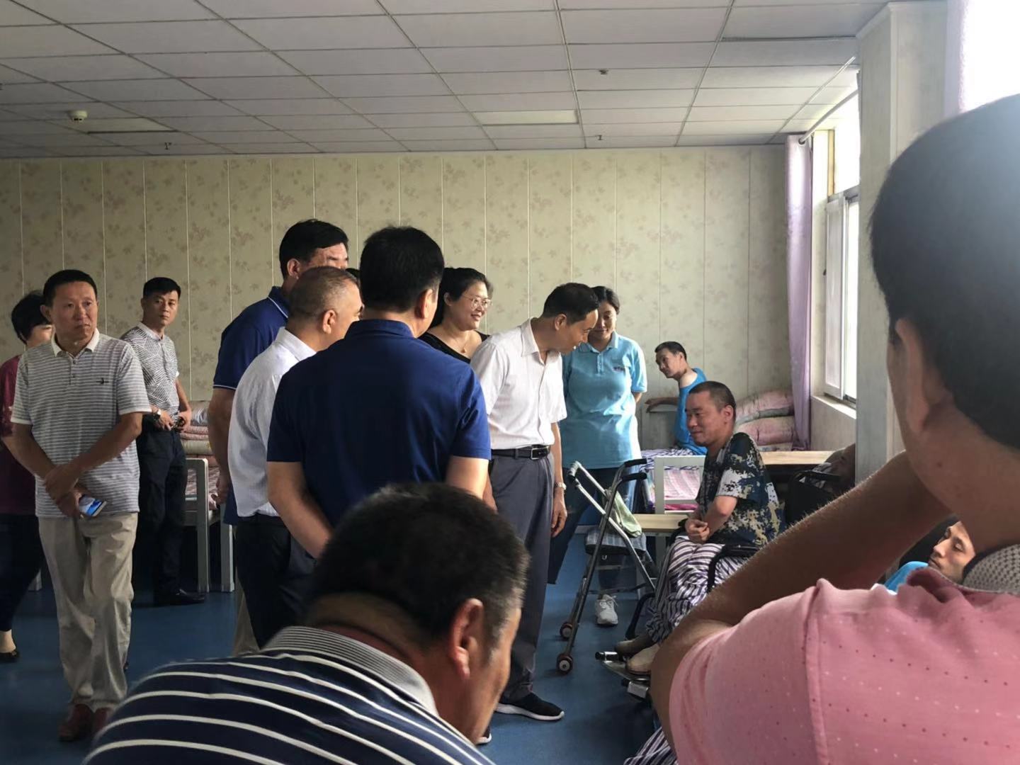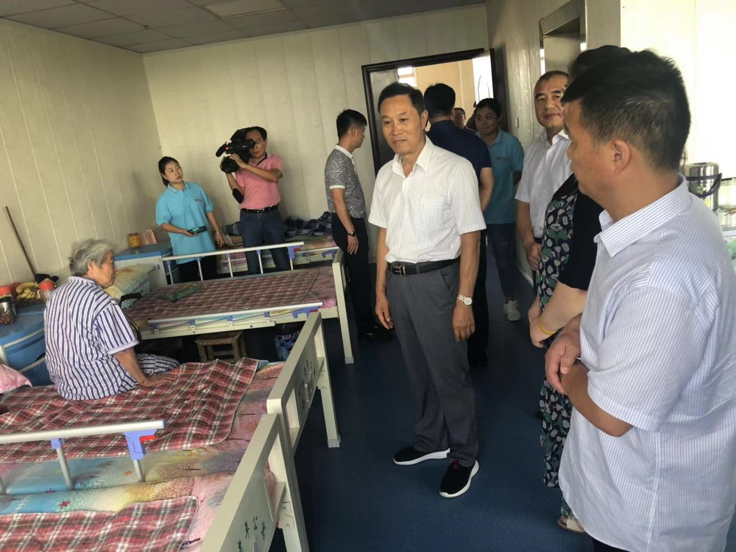 我院院长陪同领导参观了老人房间与食堂等地方。